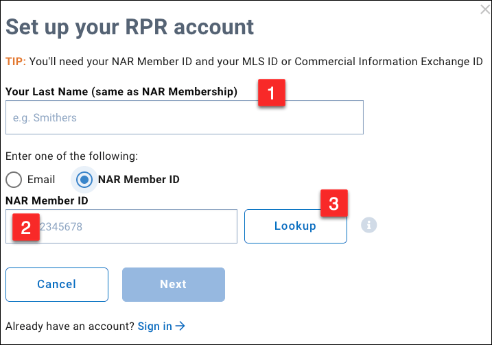 Your NRDS ID is the 8 or 9 digit number that identifies you with the National Association of REALTORS® (NAR). Find your NRDS ID on the realtor.org site.