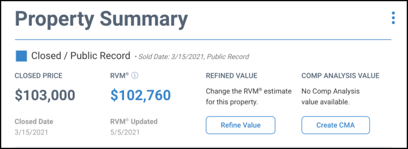 We have made selecting comps for your CMA more user-friendly. Now when you choose a comp, the comp’s map pin will change to a black circle. This will allow you to see which comps you have chosen along with their location.