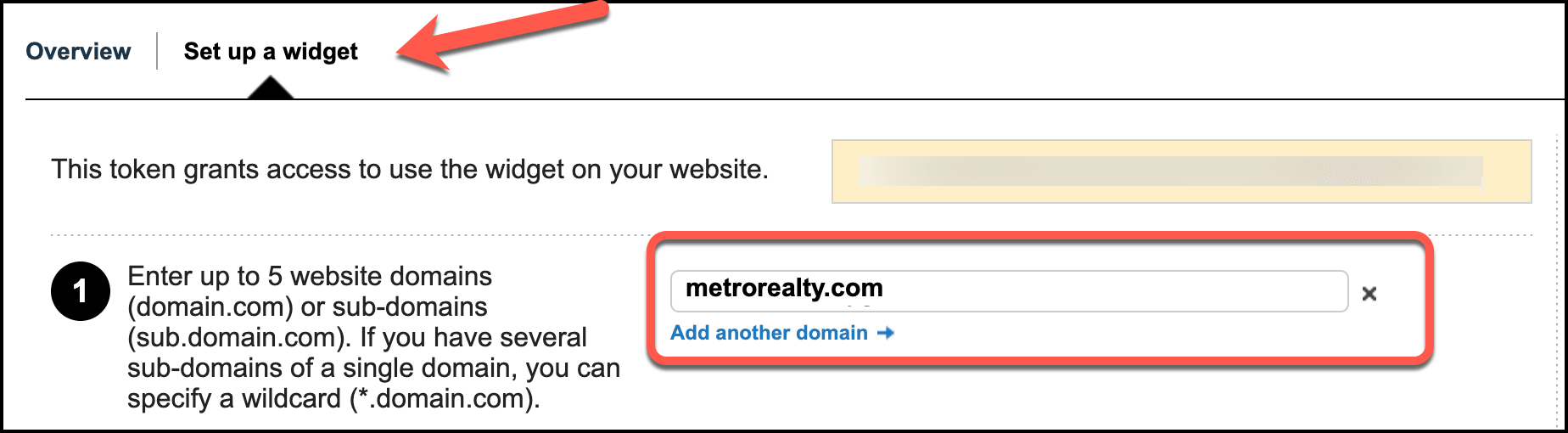 1) Enter up to 5 website domains or subdomains that will showcase your widget.