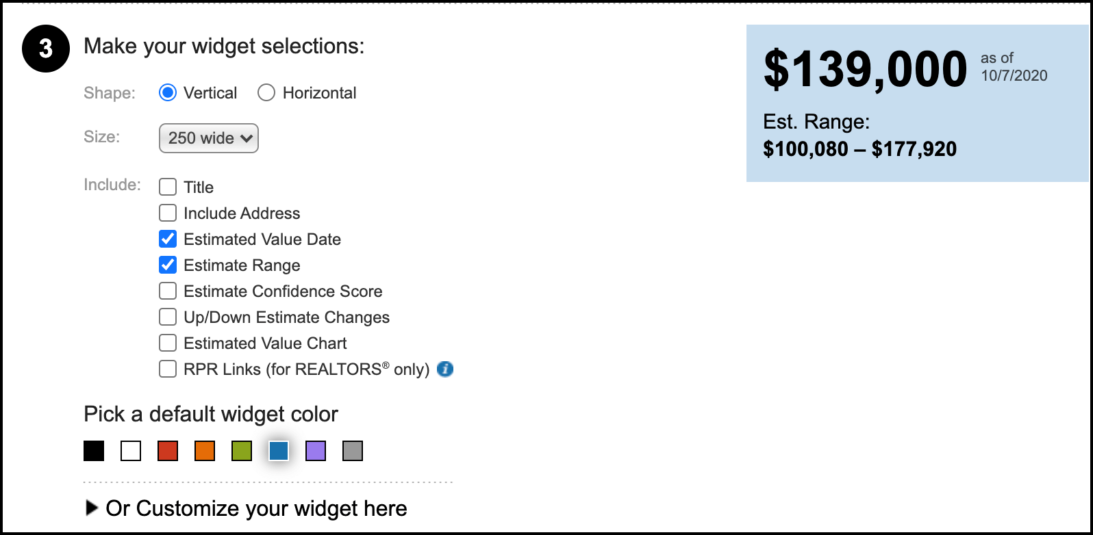 The Broker AVM widget is a customizable HTML widget that displays a property’s estimated value and associated data on a Broker’s website.