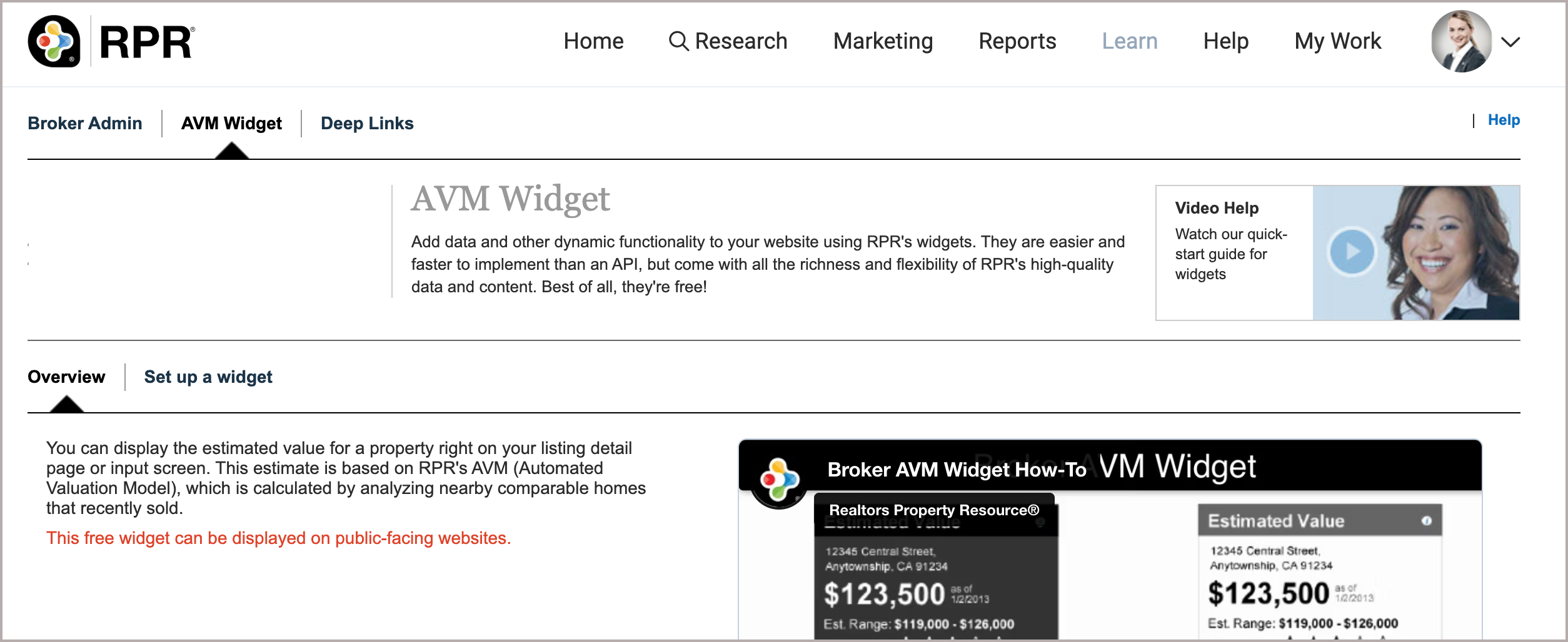 Your company must be enrolled in RPR Broker Tools to get access to the Broker AVM Widget. Broker/Owners and Managing Brokers can enroll in Broker Tools. (or add the Broker AVM Widget to your existing Broker Tools account).