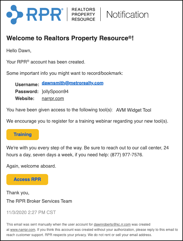 When your company’s enrollment in RPR Broker Tools is complete, you and your website developer will receive an email. Your website developer will receive a 2nd email with instructions on how to log into RPR.