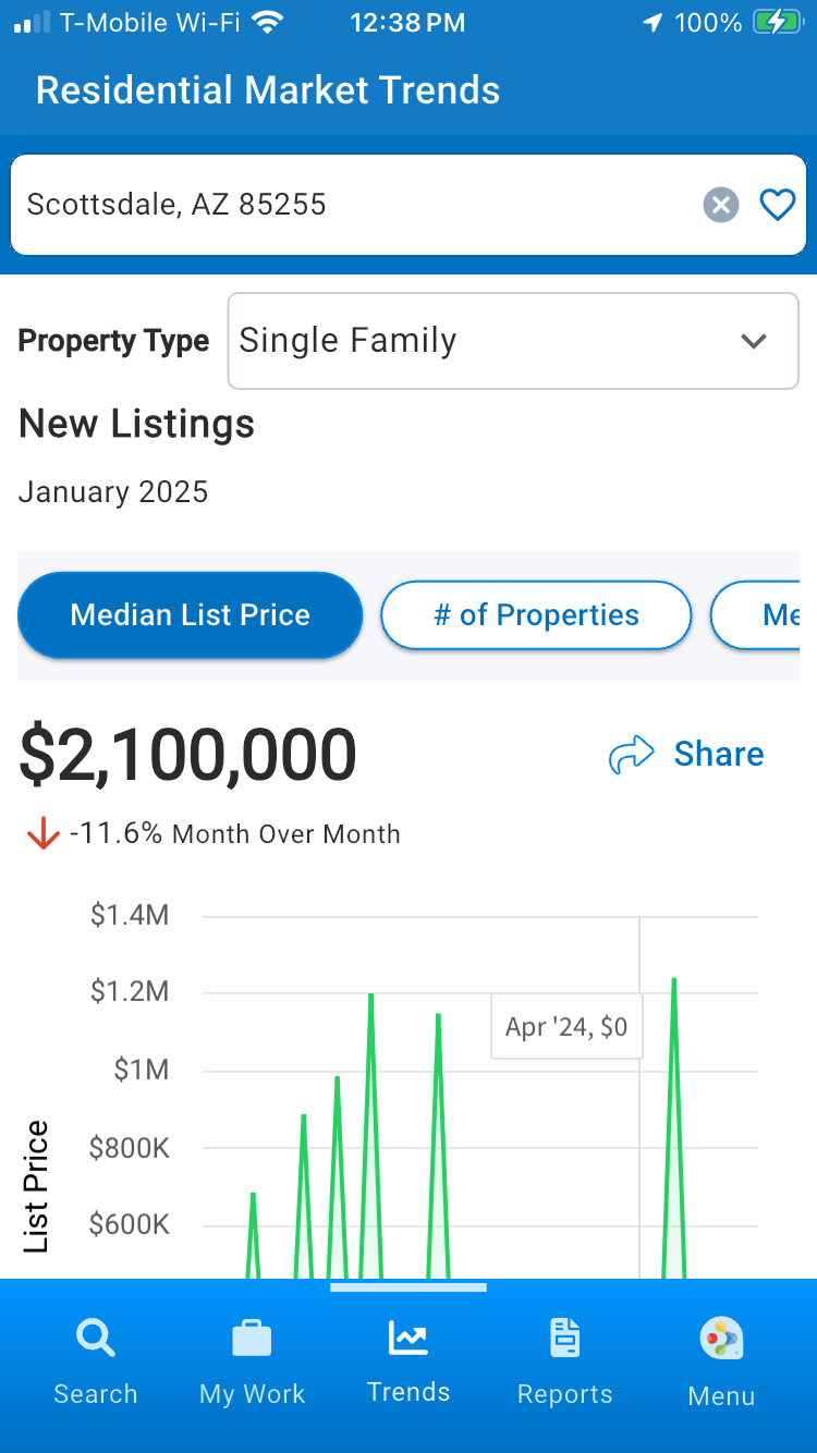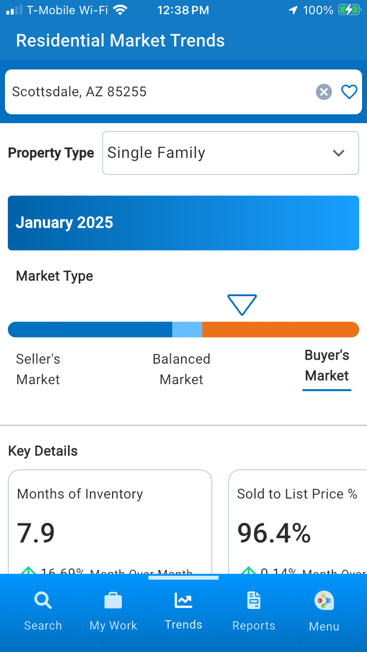 You can quickly access Months of Inventory, List-to-Sold Price Percentage, Median Days in RPR, and Median Sold Price from your mobile device. Best of all, they’re conveniently grouped by each status: New Listings, Active Listings, New Pending Listings, Pending Listings and Sold Listings. This can help your clients make informed decisions and provide better service by being able to respond quickly to changes in the market.