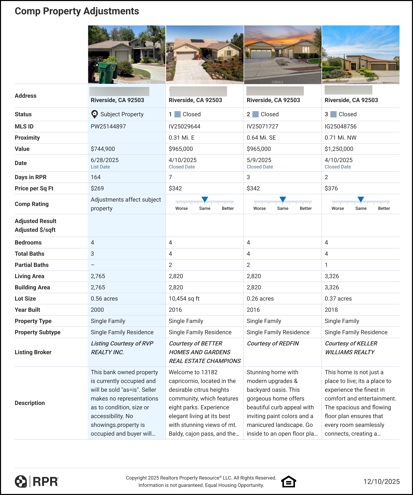 Hello Genie, The year’s winding down, the lights are twinkling and 2025 is taking its final bow… but RPR updates are still going strong! This month brings fresh tools to close out the year with clarity, including a new NAR Market Statistics dashboard link, a streamlined Market Trends Report template and major improvements to CMA comp comparisons. Plus, the mobile app continues to level up with an enhanced Buyer Tour and new AI CMA options. As always, we’re grateful for our RPR Certified Trainers and Education Directors who bring these features to life all year long. Thanks for helping agents finish strong and step confidently into the new year. Best regards, Valerie, Katie and Janelle [email protected] |